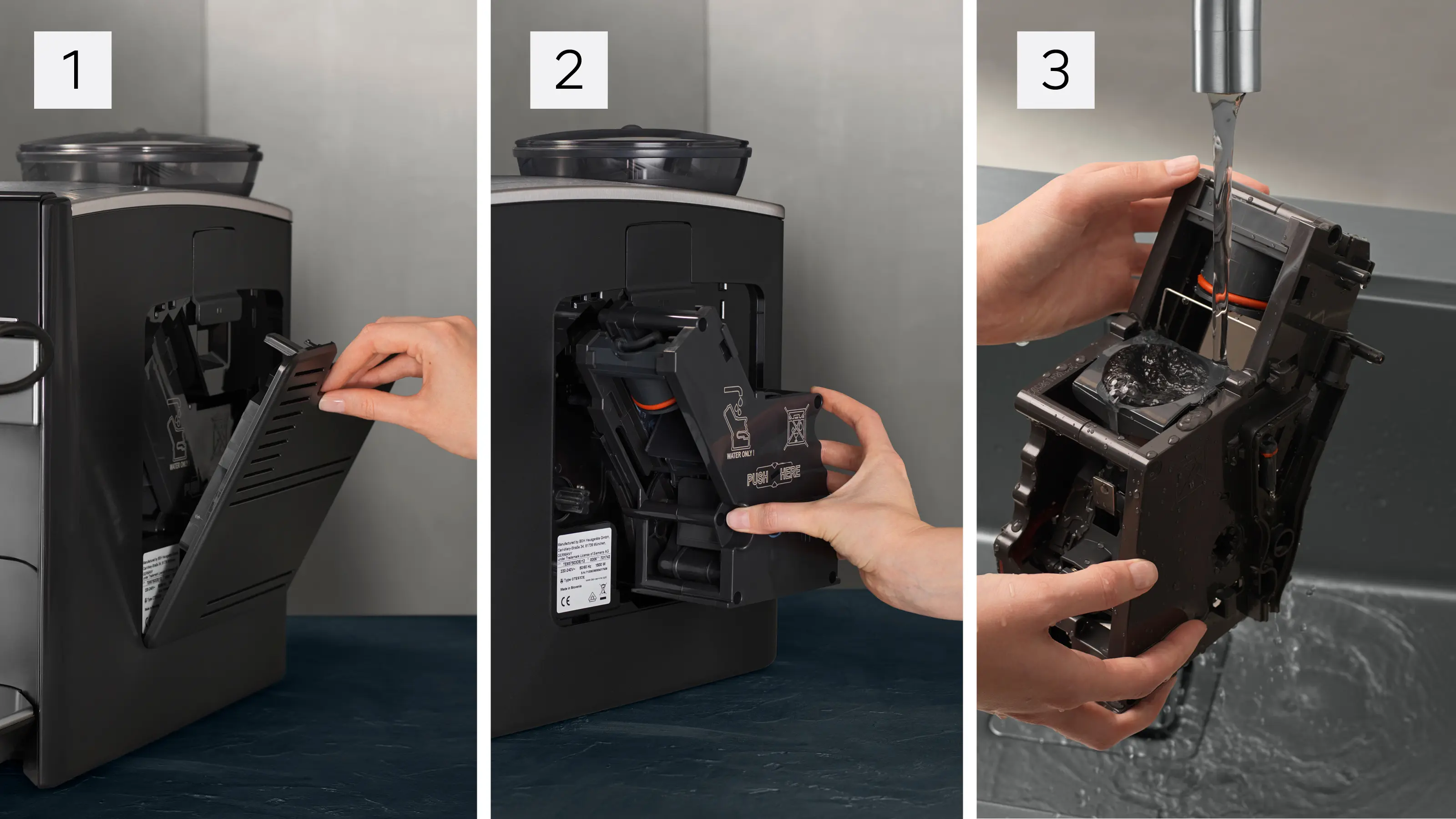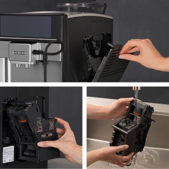 Hygiena a pohodlí je zaručena - vyjímatelná spařovací jednotka.Pro hygienické čištění se dá spařovací jednotka snadno vyjmout, opláchnout pod tekoucí vodou a poté vrátit. To zajišťuje stále dobrou chuť kávy a prodlužuje životnost. Takže se můžete vrátit k vychutnání čisté vůně těch nejlepších kávových specialit. | ![]() |