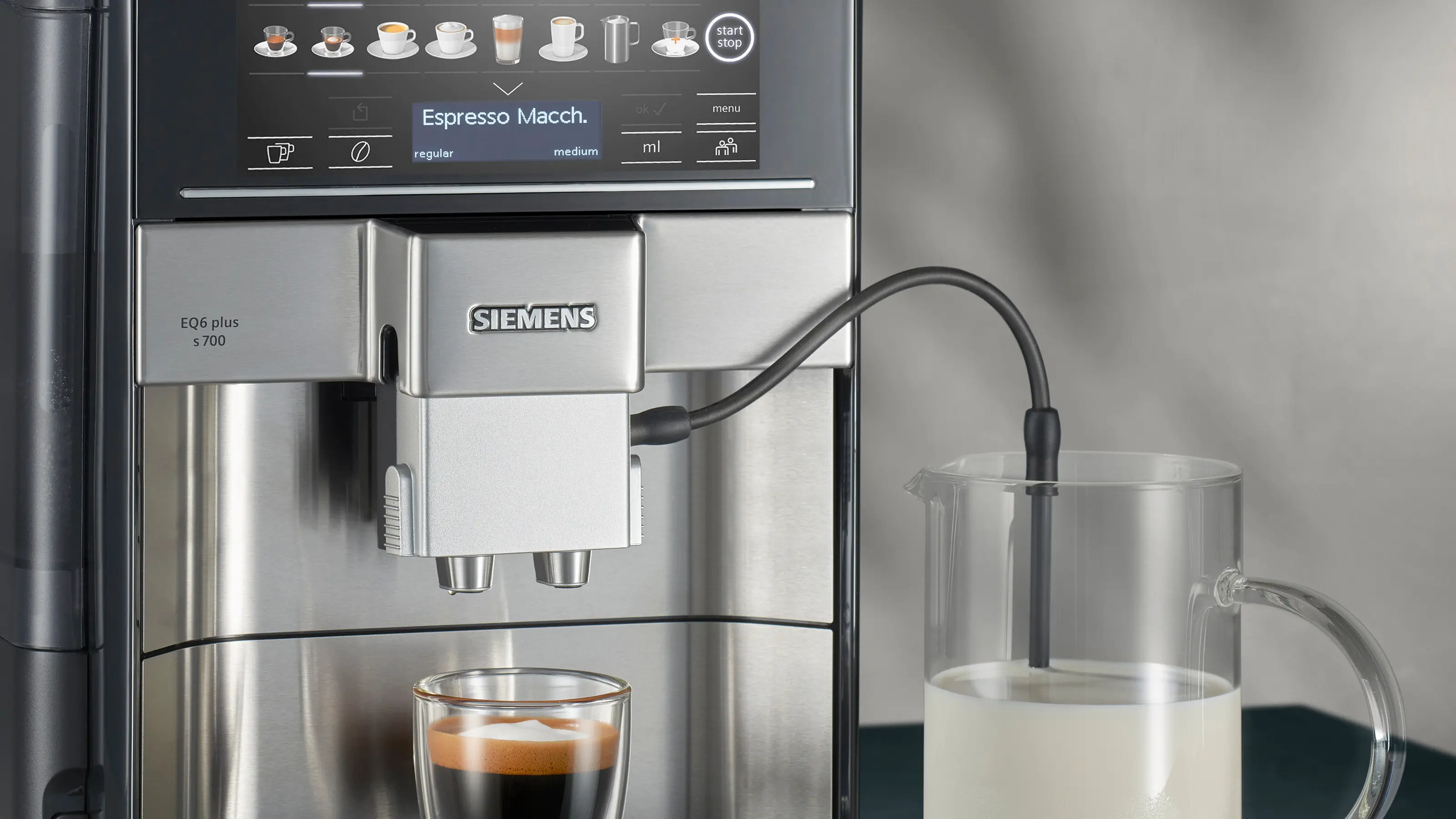 Dokonalá souhra pro dokonalou chuť - iAroma Systém.S jedinečným systémem iAroma plně automatické espresso přístroje Siemens vždy vyrábějí nejlepší nápoje. Souhra mezi trvanlivým keramickým mlýnkem, inteligentním ohřívačem, inteligentní vodní pumpou a high-tech spařovací jednotkou vytváří technickou dokonalost od kávového zrna po pohár lahodné kávy. Užívejte si! | ![]() |