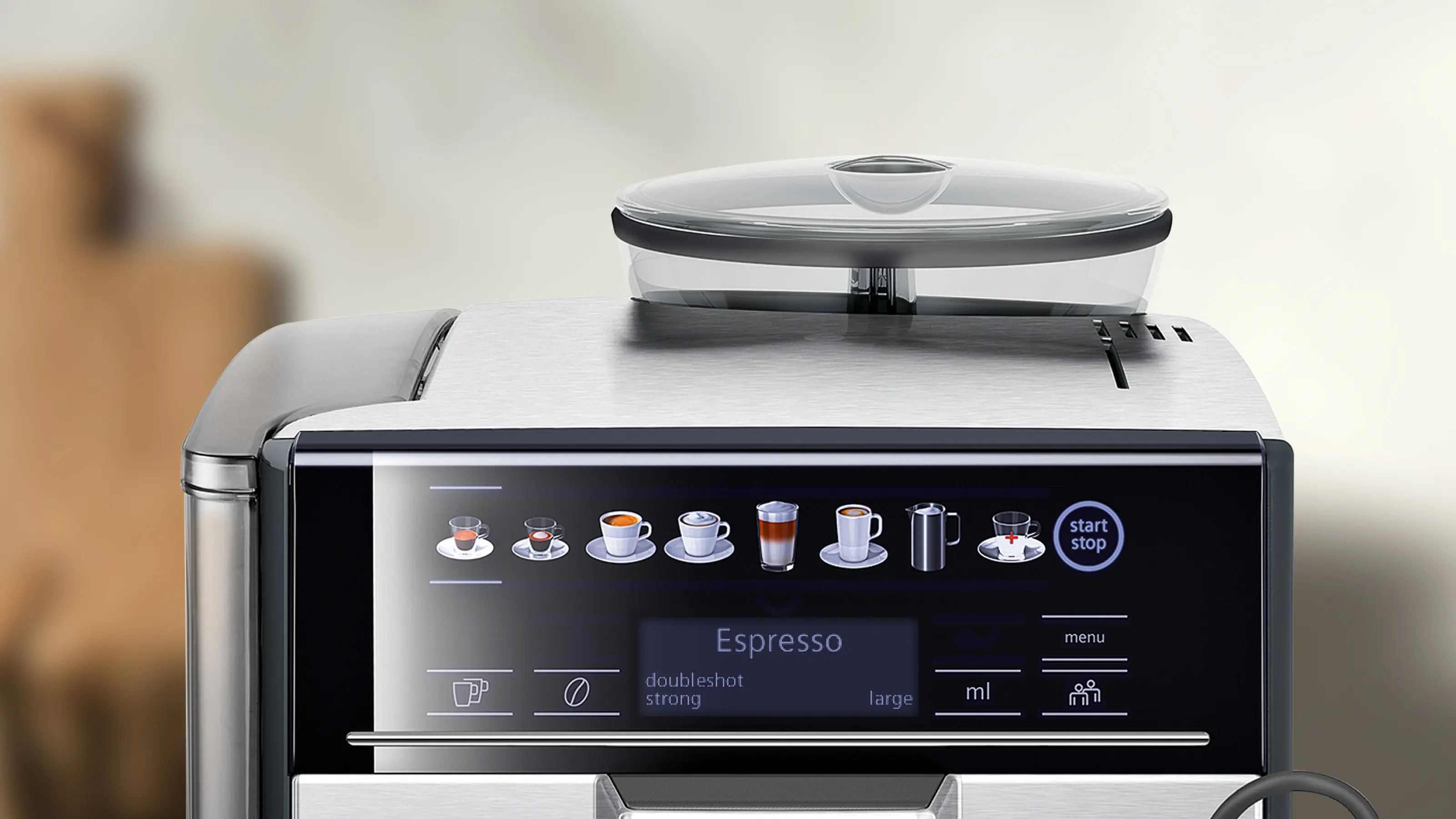 Každá možnost jasně viditelná - displej CoffeeSelect.Tento snadný a uživatelsky přívětivý koncept dělá z přípravy kávy radost. Plně barevný displej coffeeSelect zajišťuje intuitivní ovládání s menu v českém jazyce. Stručný přehled kávové nabídky, vybíraný jediným dotykem. Takto je snadná výroba kávy u plně automatických kávovarů Siemens. | ![]() |