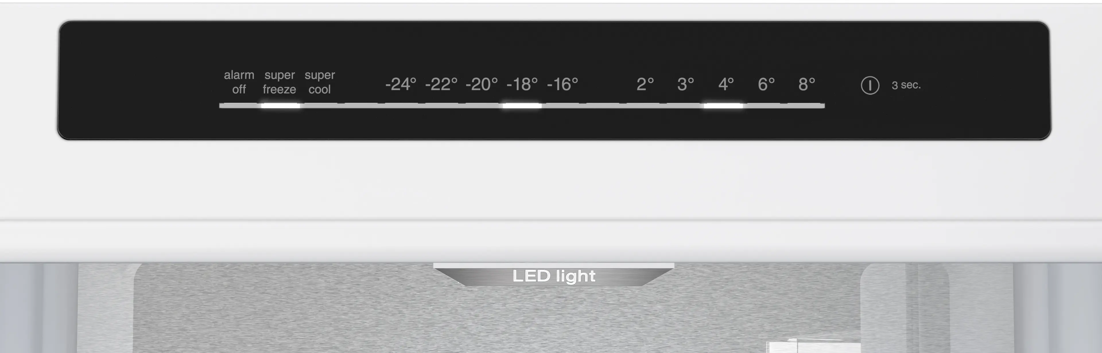 optický a akustický varovný signál při zvýšené teplotě ve vnitřním prostoru mrazničky