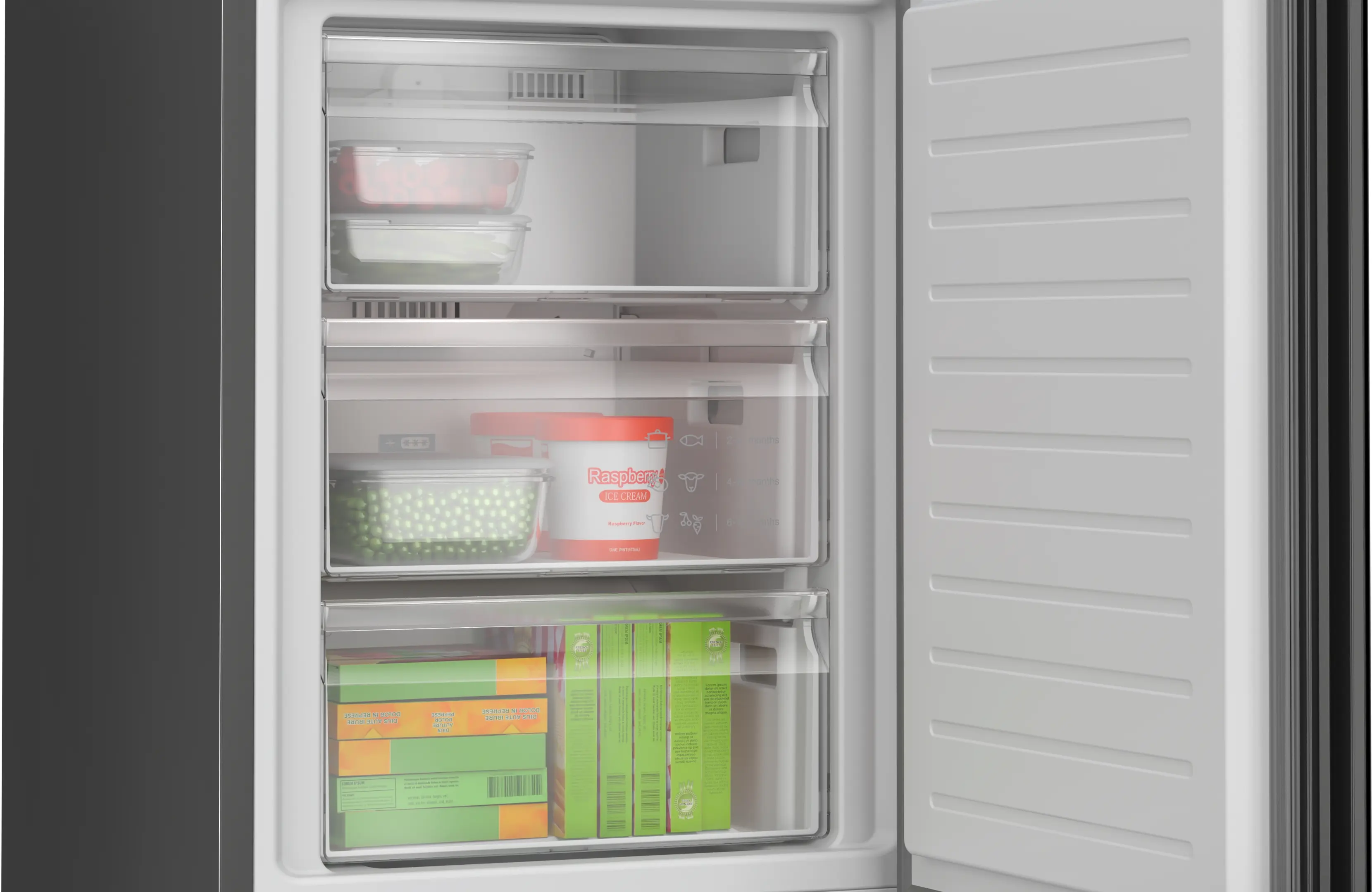 variabilní mrazicí prostor varioZone - vyjímatelné poličky z bezpečnostního skla pro extra prostor