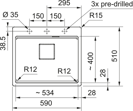 Výřez pro horní montáž: šířka 492 mm
